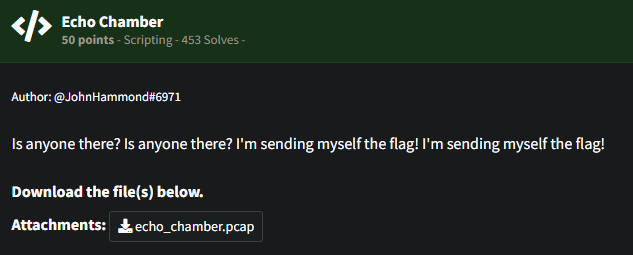 Posted on November 2, 2024 Huntress CTF 2024 – Echo Chamber *This writeup is notes only at the moment* Flag{6b38aa917a754d8bf384dc73fde633ad} Share this: Share on X (Opens in new window) X Share on Facebook (Opens in new window) Facebook Like Loading... Related