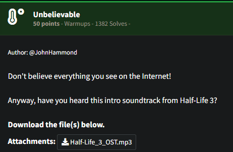 Posted on November 2, 2024November 4, 2024 Huntress CTF 2024 -Unbelievable For this file we are given an mp3 file to analyze. However, if we look at DIE (or the file headers) we can see this isn’t actually an MP3 and it’s a png. Opening the PNG gives us the flag. flag{a85466991f0a8dc3d9837a5c32fa0c91} Share this: Share on X (Opens in new window) X Share on Facebook (Opens in new window) Facebook Like Loading... Related