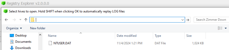 We start with an NTUSER.dat file, which we will open up in EZ’s Registry Explorer